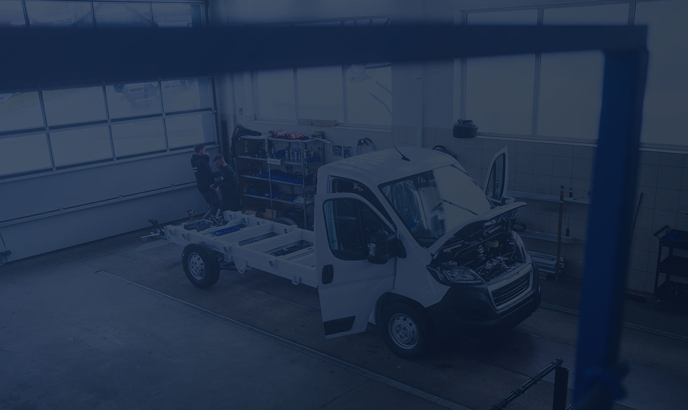 Vom Fahrzeugeinkauf bis zum fertigen Nutzfahrzeug und Transport: Wir übernehmen die komplette Organisation der Fertigung, sodass sich Ihr Koordinationsaufwand minimiert. Selbst den letzten Schliff erhalten Ihre Markenfahrzeuge bei uns in der eigenen Lackiererei.