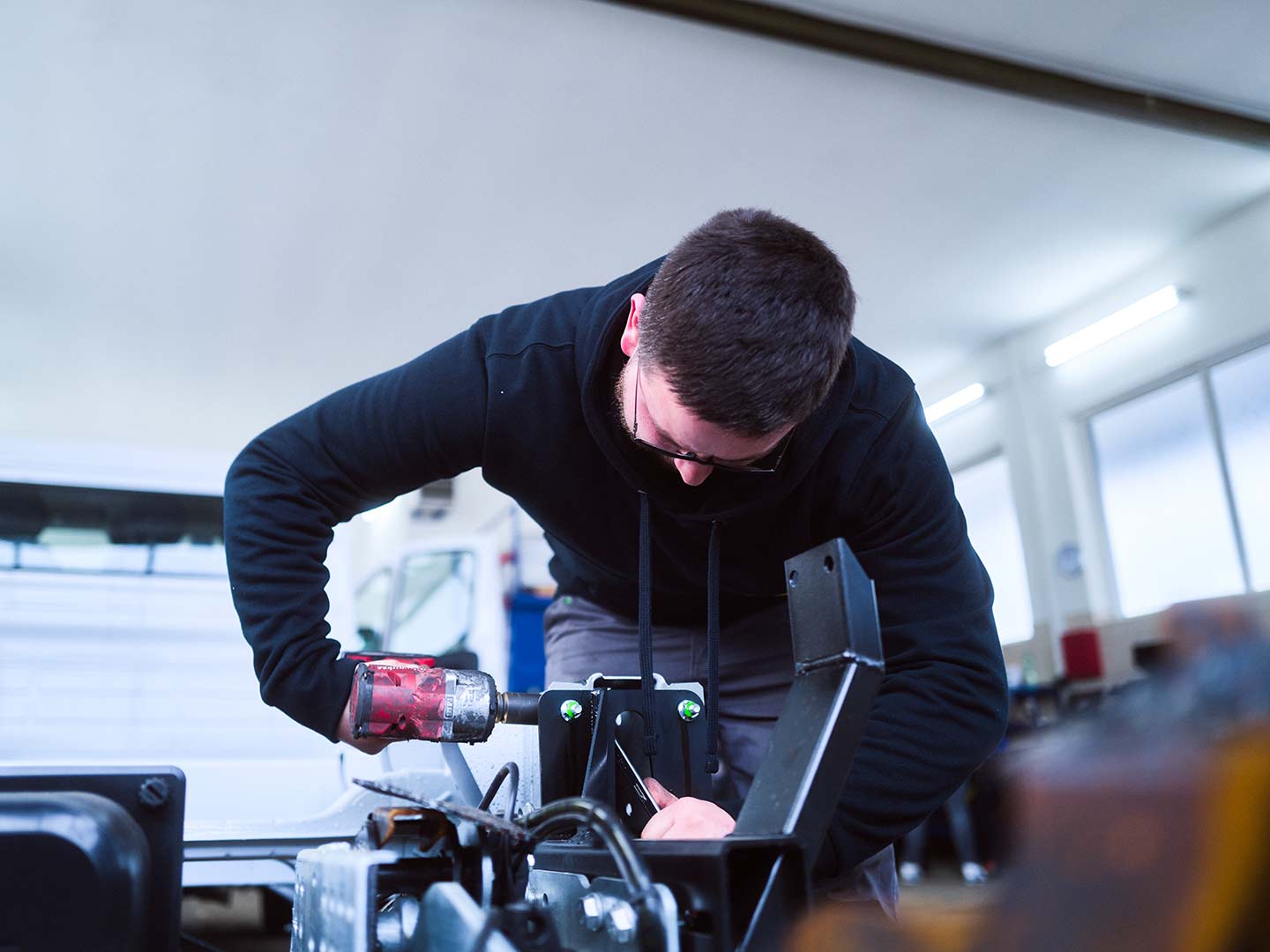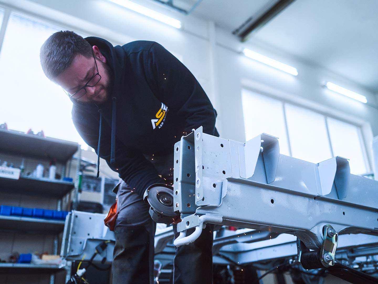 Fräsen, flexen, fertigen. Als Teil Ihrer Produktionskette verwandeln wir Ihre Basisfahrzeuge in echte Premiumprodukte, die Ihre Marke repräsentieren. Mit handwerklichem Geschick und höchster Präzision übernehmen wir umfangreiche Aufrüstungen, fertigen individuelle Fahrzeugkomponenten oder installieren elektronische Systeme – immer in enger Abstimmung mit Ihrem Projektteam.