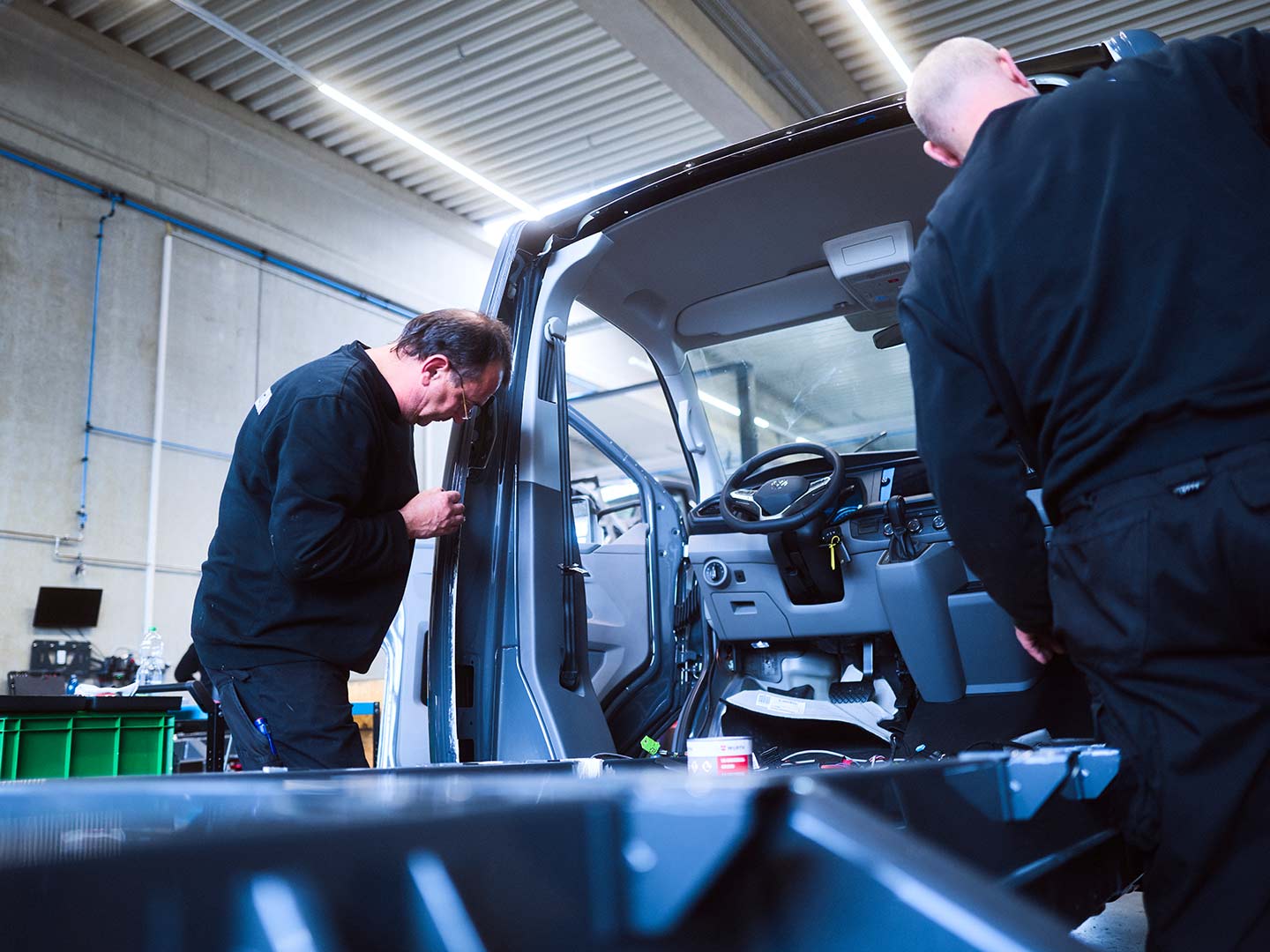 - Für die Produktion notwendige, individuelle Karosserieumbauten direkt am Basisfahrzeug